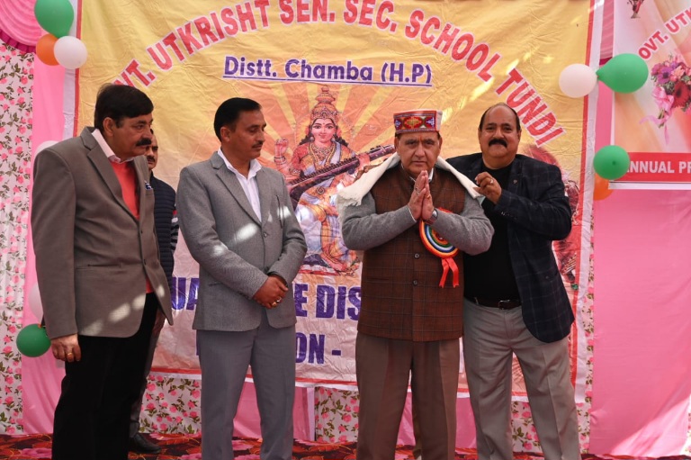 एएम नाथ। चंबा, (चुवाड़ी) :  विधानसभा अध्यक्ष कुलदीप सिंह पठानिया ने आज राजकीय वरिष्ठ माध्यमिक विद्यालय टुंडी के वार्षिक पारितोषिक वितरण समारोह में मुख्य अतिथि भाग लेते हुए शिक्षा के साथ वर्ष भर विविध आयामी गतिविधियों में उत्कृष्ट प्रदर्शन करने वाले मेधावी विद्यार्थियों को पुरस्कृत किया ।
