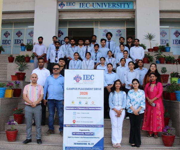 बी बीएन, 17 मार्च (तारा) : आईईसी विश्वविद्यालय कालूझंडा बद्दी ने विभिन्न प्रतिष्ठित फार्मा कंपनियों के साथ मिलकर फार्मेसी विभाग के छात्रों के लिए कैंपस प्लेसमेंट ड्राइव का आयोजन किया। इस आयोजन में