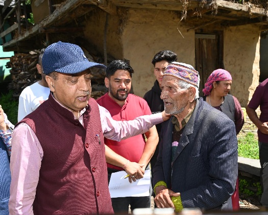 आपदाग्रस्त छतरी क्षेत्र का जयराम ठाकुर ने किया दौरा, बांटी राहत सामग्री
