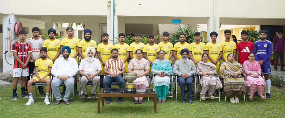 गढ़शंकर। शिरोमणि गुरुद्वारा प्रबंधक कमेटी के प्रबंध अधीन चल रहे बब्बर अकाली मेमोरियल खालसा कॉलेज गढ़शंकर की इंटर कॉलेज फुटबॉल मुकाबलों में अव्वल रही फुटबॉल टीम का पंजाब यूनिवर्सिटी चंडीगढ़ में खेल विभाग द्वारा आयोजित इनाम वितरण समारोह में चैंपियन ट्रॉफी के साथ सम्मान किया गया है। चैंपियन ट्रॉफी लेकर कॉलेज पहुंची टीम का प्रिंसिपल डॉ. अमनदीप हीरा की अगुवाई में स्टाफ और विद्यार्थियों द्वारा भव्य स्वागत किया गया। गुरूसर सुधार में हुए पंजाब यूनिवर्सिटी इंटर कॉलेज फुटबॉल मुकाबलों में कॉलेज की टीम ने कोच हरदीप सिंह गिल की अगुवाई में शानदार प्रदर्शन करते हुए ‘ए’ डिवीजन के कॉलेजों को पछाड़ते हुए गोल्ड मेडल जीता था। इसी तरह कॉलेज के एम.ए. हिस्ट्री के विद्यार्थी हरकीरत सिंह ने शॉट पुट में शानदार प्रदर्शन करते हुए कांस्य पदक जीता है। प्रिंसिपल डॉ. अमनदीप हीरा ने इस शानदार उपलब्धि के लिए कोच हरदीप सिंह गिल और खिलाड़ियों को बधाई देते हुए ओलंपियन जर्नैल सिंह मेमोरियल फुटबॉल टूर्नामेंट कमेटी गढ़शंकर के प्रधान मुख्तियार सिंह हैप्पी हीर, डॉ. हरविंदर सिंह बाठ, योगराज गंभीर तथा अन्य सदस्यों का सहयोग के लिए धन्यवाद किया। इस मौके प्रो. लखविंदरजीत कौर, प्रो. कंवर कुलवंत सिंह, स्पोर्ट्स कमेटी सदस्य, सुपरडेंट परमिंदर सिंह और अन्य उपस्थित थे।