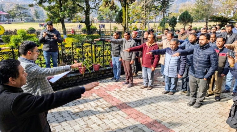 एएम नाथ। चम्बा : उपायुक्त एवं जिला निर्वाचन अधिकारी मुकेश रेपसवाल ने आज उपायुक्त कार्यालय परिसर में विभिन्न विभागों के अधिकारियों एवं कर्मचारियों को मतदान के लिए शपथ दिलाई। इस दौरान उन्होंने “मेरा भारत, मेरा वोट” भारतीय लोकतंत्र के केंद्र में नागरिक, के तहत सभी को लोकतांत्रिक मूल्यों के प्रति जागरूक किया।