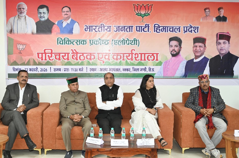 एएम नाथ। मंडी :  पूर्व मुख्यमंत्री एवं नेता प्रतिपक्ष जयराम ठाकुर ने मण्डी जिला के बल्ह विधानसभा क्षेत्र के चक्कर में भाजपा कार्यकर्ताओं के साथ प्रधानमंत्री नरेंद्र मोदी के लोकप्रिय कार्यक्रम “मन की बात” को सुना और इसके पश्चात प्रदेश चिकित्सा प्रकोष्ठ (एलोपैथी) की परिचय बैठक व कार्यशाला को संबोधित किया। इस अवसर पर जयराम ठाकुर ने भारत मंडपम में आयोजित ‘एआई इम्पैक्ट समिट 2026’ की सफलता के लिए प्रधानमंत्री और देशवासियों को बधाई देते हुए कहा कि यह आयोजन पीएम मोदी के दूरदर्शी विजन का परिणाम है, जिसने विश्व पटल पर भारत के तकनीकी कौशल, उन्नत एआई मॉडल्स और नवाचार की क्षमता का लोहा मनवाया है। उन्होंने जोर देकर कहा कि यह समिट भारतीय प्रतिभा और तकनीकी आत्मनिर्भरता को सशक्त कर देश के युवाओं के लिए प्रगति के नए मार्ग प्रशस्त करेगी। “मन की बात” के माध्यम से डिजिटल सुरक्षा पर चर्चा करते हुए उन्होंने नागरिकों से ‘डिजिटल अरेस्ट’ जैसे साइबर अपराधों के प्रति सतर्क रहने का आह्वान किया और कहा कि प्रधानमंत्री का मार्गदर्शन एक सुरक्षित और विकसित भारत के निर्माण में जनभागीदारी को सुदृढ़ कर रहा है। इसके उपरांत, चिकित्सा प्रकोष्ठ की बैठक को संबोधित करते हुए नेता प्रतिपक्ष ने चिकित्सकों को समाज में सेवा, समर्पण और संवेदना का प्रतीक बताया। उन्होंने कहा कि चिकित्सकों की जिम्मेदारी केवल उपचार तक सीमित नहीं है, बल्कि स्वास्थ्य योजनाओं के प्रभावी क्रियान्वयन और समाज के अंतिम व्यक्ति तक बेहतर चिकित्सा सुविधा पहुंचाना उनकी प्राथमिकता होनी चाहिए। उन्होंने विश्वास जताया कि प्रदेश चिकित्सा प्रकोष्ठ भविष्य में जनस्वास्थ्य के क्षेत्र में और अधिक सक्रिय एवं सशक्त भूमिका निभाते हुए सेवा के मूल मंत्र को मजबूत करेगा। इस दौरान उन्होंने संगठनात्मक ढांचे और जनसेवा के प्रति चिकित्सकों के सामाजिक दायित्वों पर भी विस्तृत चर्चा की।
