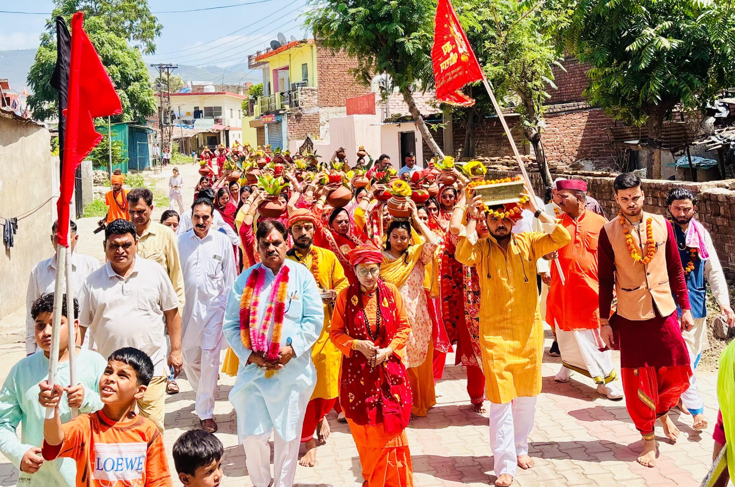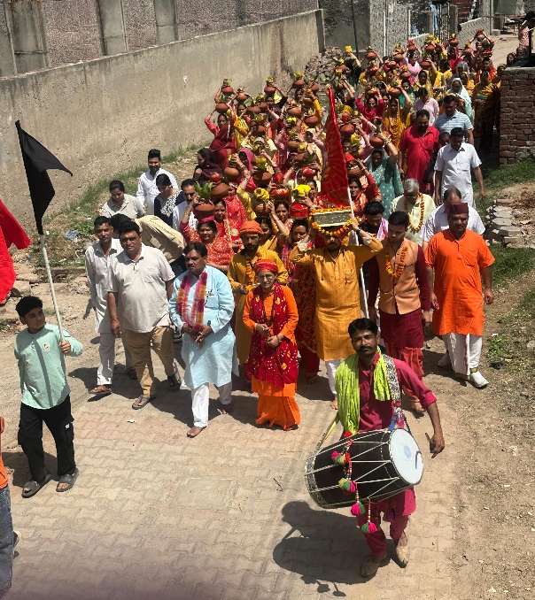 फोटो केप्शन: पलांखवाला में श्रीमद भागवत कथा के पूर्व कलश यात्रा निकालते हुए ग्रामीण