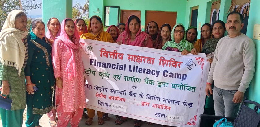एएम नाथ। हमीरपुर 03 मार्च : कांगड़ा केंद्रीय सहकारी बैंक की शाखा काले अंब ने नाबार्ड के सहयोग से ग्राम पंचायत नाड़सी के गांव ककड़ियार में वित्तीय साक्षरता शिविर का आयोजन किया। इस शिविर का उद्देश्य ग्रामीणों को बैंकिंग सेवाओं, बचत की आदत तथा विभिन्न सरकारी योजनाओं की जानकारी प्रदान करना था। कार्यक्रम में शाखा प्रबंधक ललित कुमार और मेहर चंद विशेष रूप से उपस्थित रहे।