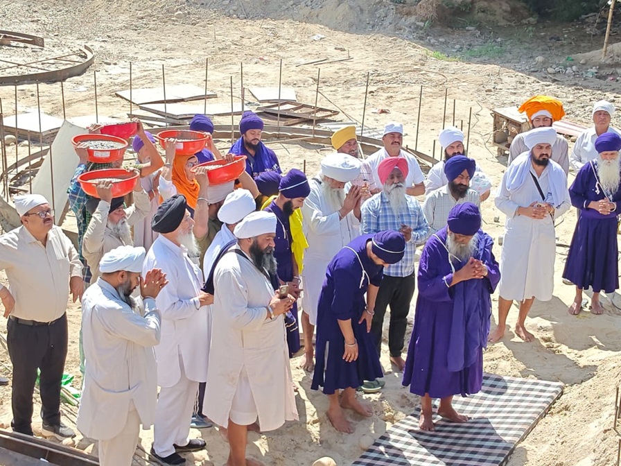 फोटो :  कार सेवा किला आनंदगढ़ साहिब के मुखी संत बाबा सतनाम सिंह जी, संत बाबा गुरदेव सिंह जी शहीदी बाग वाले और अन्य हस्तियां पुल के पाये के निर्माण कार्य की शुरुआत के मौके पर अरदास करते हुए।