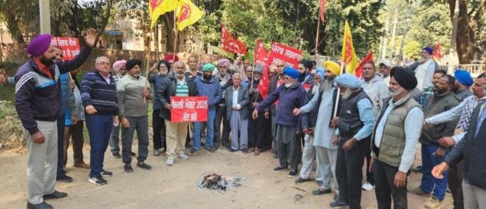 गढ़शंकर, 8 दिसंबर: संयुक्त किसान मोर्चा द्वारा सब-डिवीजन स्तर पर बिजली संशोधन बिल व बीज बिल 2025 की प्रतियां जलाने के आह्वान के बाद आज गढ़शंकर के बिजली कर्मचारी संगठनों व संयुक्त किसान मोर्चा से संबंधित संगठनों के सक्रिय नेताओं ने आनंदपुर साहिब रोड स्थित बिजली दफ्तर के गेट पर दोनों संशोधन बिलों की प्रतियां जलाकर रोष प्रदर्शन किया। प्रतियां जलाने से पहले एकत्रित हुए किसानों व कर्मचारियों को संबोधित करते हुए विभिन्न संघर्षशील किसान व कर्मचारी नेताओं गुरनेक भज्जल, कुलविंदर चाहल, कुलभूषण महिंदवानी, कमल देव सेवानिवृत्त एसडीओ, अश्वनी कुमार सर्कल सचिव व मुकेश कुमार ने कहा कि केंद्र की फासीवादी सरकार सरकारी व सार्वजनिक संस्थानों को विदेशी कॉरपोरेट्स के इशारे पर चला रही है और उन्हें सीधे निजी हाथों में सौंप रही है। इस समय किसान नेता दर्शन सिंह मट्टू, रामजी दास चौहान, प्रो. कुलवंत सिंह गोलेवाल, कुलविंदर संघा, शमशेर सिंह चक सिंघा, राम पाल टीएसयू नेता मूल राज, हंस राज गढ़शंकर ने कहा कि बिजली अध्यादेश लाकर लोगों को मिलने वाली सुविधाएं और सस्ती बिजली खत्म करके कॉरपोरेट्स को मुनाफा कमाने की कोशिश की गई है, जिसके खिलाफ बिजली कर्मचारी संघर्ष कर रहे हैं और अब संयुक्त किसान मोर्चा ने भी संघर्ष का बिगुल बजा दिया है। इस समय विभिन्न किसान यूनियनों के नेता शिंगारा सिंह भज्जल, कश्मीर सिंह भज्जल, अमरजीत सिंह बंगड़, सतपाल कलेर, गुरमेल सिंह, बलवंत राम, प्रिंसिपल जगदीश राय, ज्ञानी अवतार सिंह आदि मौजूद थे। नेताओं ने केंद्र व राज्य सरकारों को चेतावनी दी है कि अगर ये संशोधन बिल वापस न लिए गए तो पंजाब व देश के सभी मेहनतकश लोग इसके खिलाफ पंजाब व राष्ट्रीय स्तर पर बड़ा आंदोलन शुरू करेंगे।