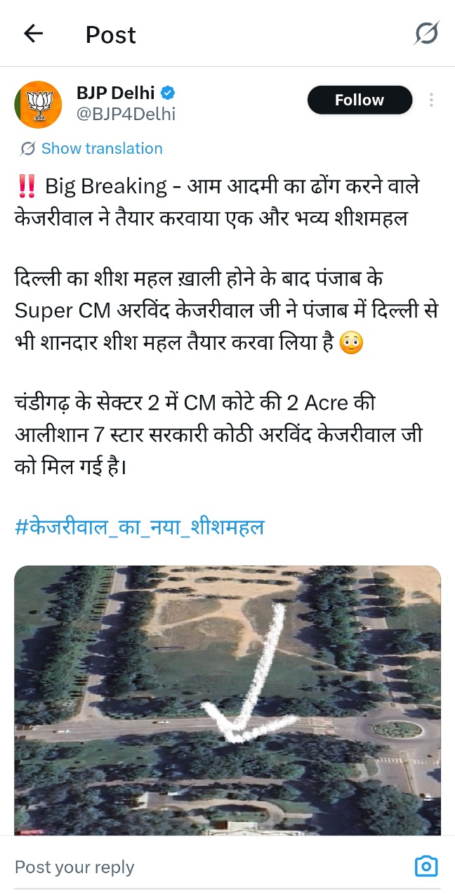 पूनावाला ने एक वीडियो संदेश में कहा, “दिल्ली के लोगों ने केजरीवाल को नई दिल्ली स्थित उनके ‘शीश महल’ से हटा दिया, लेकिन शीश महल वाली मानसिकता खत्म नहीं हुई है। पंजाब में करदाताओं के पैसे से, पंजाब के मुख्यमंत्री के कोटे के तहत ‘शीश महल भाग-2’ का निर्माण किया जा रहा है, क्योंकि केजरीवाल पंजाब के ‘सुपर सीएम’ हैं।” भाजपा प्रवक्ता ने कहा, “केजरीवाल निर्वाचित विधायक नहीं हैं, वह सरकार में भी शामिल नहीं हो सकते। लेकिन, पंजाब के करदाताओं के पैसे से उनके लिए सात सितारा सुविधाएं उपलब्ध कराई जा रही हैं।” भाजपा प्रवक्ता ने आरोप लगाया कि पंजाब में सत्तारूढ़ आप ने राज्य के लोगों से किए गए अपने वादे पूरे नहीं किए हैं।
