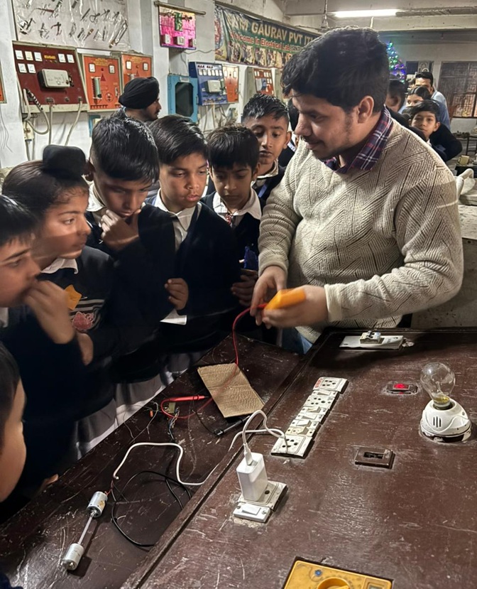 रोहित जसवाल । संतोषगढ़ : प्रदेश के उपमुख्यमंत्री मुकेश अग्निहोत्री के पैतृक क्षेत्र गोंदपुर जयचंद स्थित राजकीय वरिष्ठ माध्यमिक पाठशाला के छात्र छात्राओं ने शनिवार को शैक्षणिक भ्रमण के तहत हिम गौरव आईटीआई संतोषगढ़ का दौरा किया।ललित कुमार, विपिन कंग, अमनजीत कौर और प्रवीण चौधरी के नेतृत्व में आए छात्र दल का संस्थान पहुंचने पर गर्मजोशी से स्वागत किया गया। जैसे ही विद्यार्थी आधुनिक प्रयोगशालाओं में पहुंचे, उनके चेहरों पर उत्सुकता साफ दिखाई देने लगी।