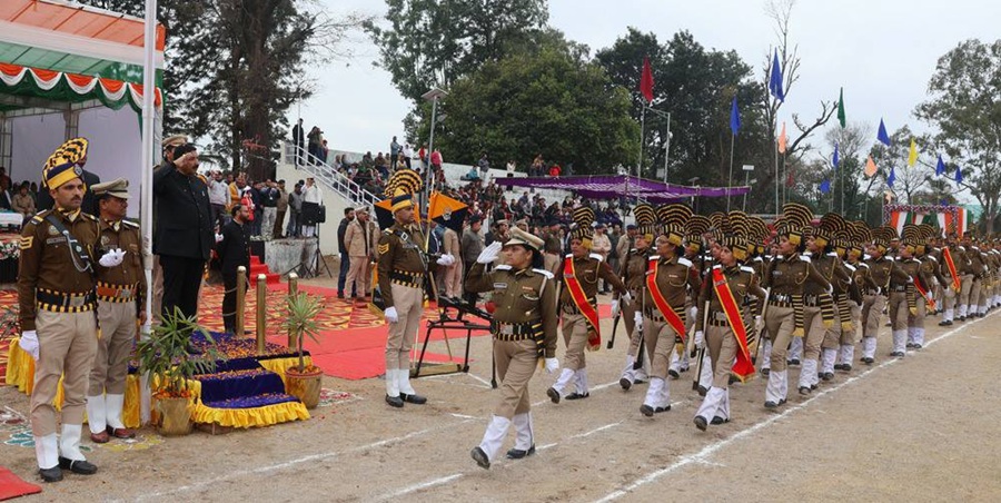 धर्मशाला, 26 जनवरी: उप-मुख्यमंत्री मुकेश अग्निहोत्री ने सोमवार को कांगड़ा जिले के मुख्यालय धर्मशाला के पुलिस मैदान में आयोजित जिला स्तरीय 77वें गणतंत्र दिवस समारोह की अध्यक्षता की। उन्होंने इस अवसर पर राष्टीय ध्वज फहराया तथा सेना, पुलिस, होम गार्ड्स, एनएसएस और स्काउट एवं गाइड्स की टुकड़ियों द्वारा प्रस्तुत शानदार परेड की सलामी ली।
