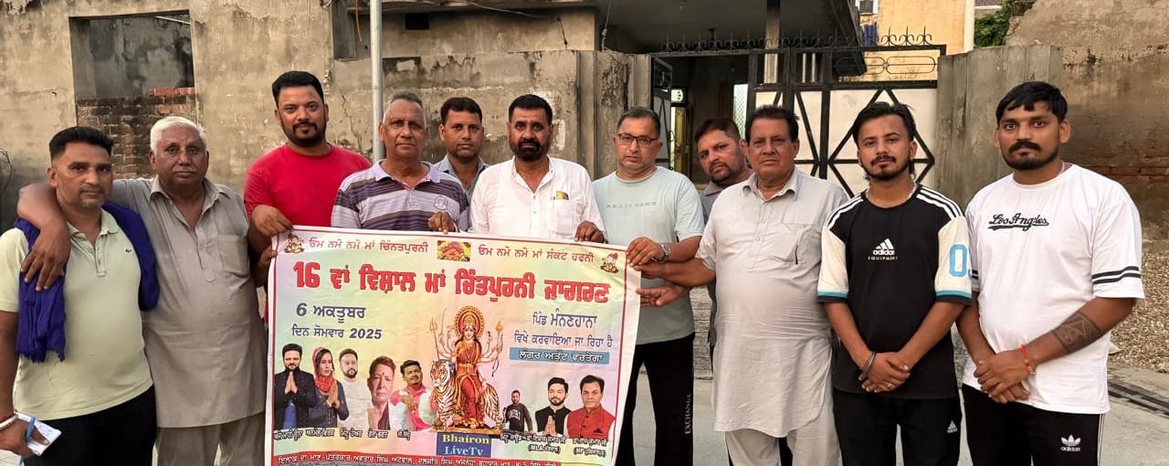 होशियारपुर /दलजीत अजनोहा : जिला होशियारपुर के गांव मननहाना में प्रत्येक वर्ष की भांति इस वर्ष भी जय मां चिंतपूर्णी जागरण कमेटी की ओर से समूह नगर निवासी ,ग्राम पंचायत और प्रवासी भारतीयों के विशेष सहयोग से 16 वा विशाल मां भगवती जागरण 11 अक्तूबर को बहुत ही प्रेम वा श्रद्धा से करवाया जा रहा है इस सम्बन्धी जानकारी देते हुए अध्यक्ष रछपाल सिंह कलेर की ओर से समूह कमेटी सदस्यों की उपस्थिति में बताया के इस जागरण में प्रमुख कलाकार महामाई की महिमा का गुणगान करेंगे जिन में अजय माही ऊना,अनमोल विर्क,मिंटू हेयर,गोरा भगत ओर जी सिद्धू शामिल है और इस अवसर पर क्षेत्रीय विधायक डाक्टर इशांक कुमार और क्षेत्रीय सांसद डाक्टर राज कुमार चब्बेवाल मुख्य अतिथि और विशेष अतिथि के रूप मे शामिल होंगे और संगतों को महामाई का भंडारा निरंतर वितरण किया जाएगा इस अवसर पर उपस्थित कमेटी सदस्यों में बलजीत थिंद, बलबीर भाटिया,सब इंस्पेक्टर सुरिंदर पाल,परमजीत हमपाल,जिंदर कलेर,भूपिंदर भाई,बॉबी,जसवंत बंसल,कुलवरन खुतन,विकी,हरबंस लाल,जंग सिंह,हैप्पी,नरेंद्र शर्मा,पंडित केवल,मास्टर सोहन लाल पंच,अजीत फौजी,शम्मी लाल आदि थे