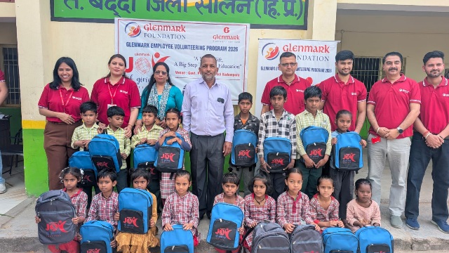 ग्लेनमार्क फार्मा कंपनी ने स्कूली बच्चों को बांटी शिक्षण सामग्री