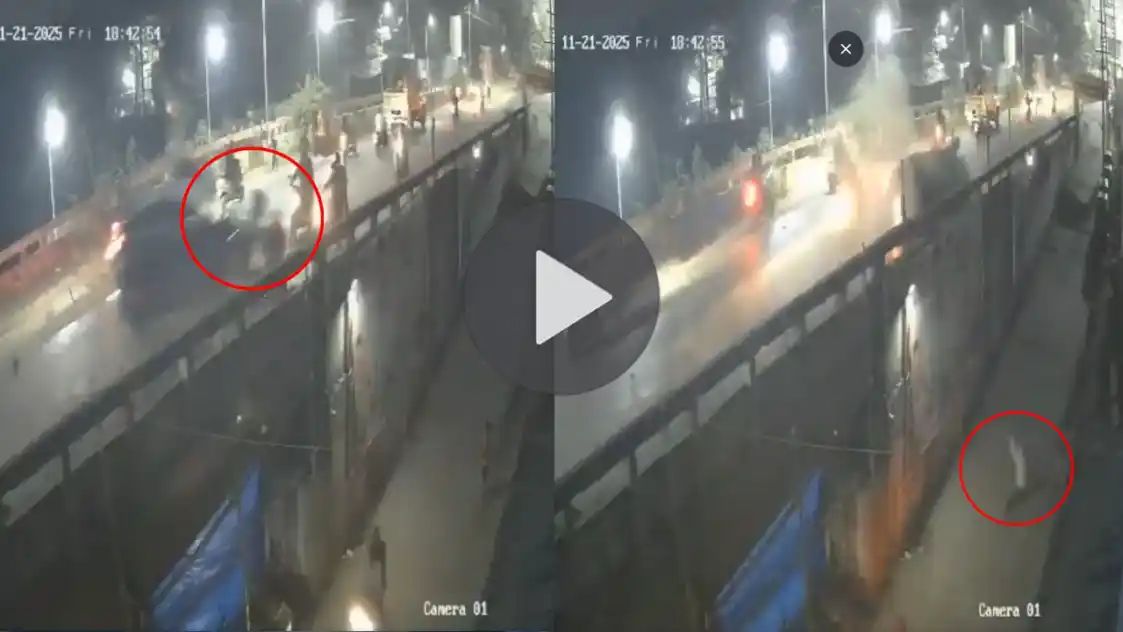हादसे की जगह से सामने आए सीसीटीवी फुटेज में दिख रहा है कि एक तेज रफ्तार कार व्यस्ततम अंबरनाथ फ्लाईओवर पर मुड़ते हुए कई टू-व्हीलर को टक्कर मार देती है। इतना ही नहीं कार भी फ्लाईओवर पर ही पलट जाती है। घटना का दर्दनाक वीडियो आप भी देख सकते हैं…
