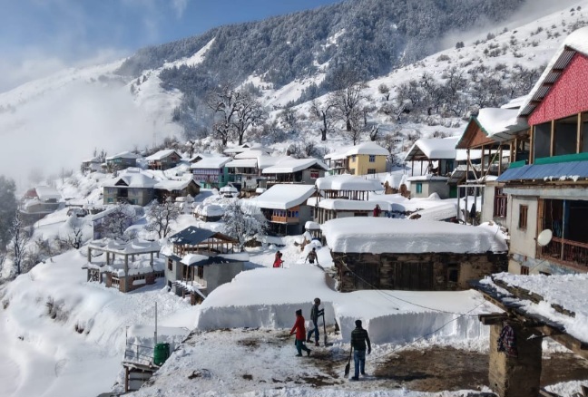 एम नाथ। चम्बा : चुराह उपमंडल की अति दुर्गम ग्राम पंचायत टेपा के हैल गाँव में करीबन 3 फीट बर्फबारी हुई है, जिससे ग्रामीण घरों में कैद हो गए हैं। बिजली तीन दिनों से ठप है, और 2 दिन से जियो का नेटवर्क भी गायब है। बैरागढ़ देवीकोठी टेपा मार्ग भी बंद है, जिससे पंचायत के टेपा, हैयल चंडरू, गुवाड़ी, पिशोगा, डेरा, बाहला व द्रढोगा सहित कुल आठ गाँवों की 5 हजार आबादी प्रभावित हुई है।