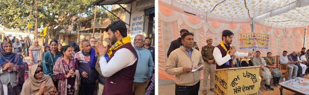 होशियारपुर/दलजीत अज्नोहा ; चब्बेवाल निवासियो की सोच का संकेत दे रहा है। आज चब्बेवाल विधायक डॉ इशांक कुमार द्वारा जेजों, खन्नी, बद्दोवाल, महदूद व तोडरपुर सहित कई गांवों में आयोजित जनसभाओं और डोर-टू-डोर अभियानों में अपेक्षा से अधिक जनभागीदारी देखने को मिली। ग्रामीणों से संवाद के दौरान, विधायक डॉ. ईशांक ने विकास के प्रति अपनी वचनबद्धता दोहराते हुए कहा कि वह जनता की समस्याएँ हल करने के लिए हमेशा तत्पर तहत प्रयासरत रहते हैं, क्योंकि हमारा लक्ष्य समाधान सहित विकास है। “असली राजनीति वायदे नहीं, व्यवहार में दिखती है। यही भरोसा हम हर घर में लेकर जा रहे हैं” —उन्होंने कहा। जेजों क्षेत्र के ब्लॉक समिति उम्मीदवार दारा सिंह ने ग्रामीणों को सम्बोधित करते हुए कहा कि अगर लोगों द्वारा उन्हें ज़िम्मेदारी दी जाएगी तो हमारा काम दिखावे तक सीमित नहीं रहेगा — हम लोगों कि हर अपेक्षा पर पूरा उतरने के लिए उनकी हर समस्या का समाधान सांसद डॉ राज कुमार चब्बेवाल तथा विधायक डॉ इशांक के साथ मिल कर करवाएंगे। टोडरपुर में भी मिला प्रभावी समर्थन टोडरपुर (भाम ज़ोन) में आयोजित महत्वपूर्ण बैठक में डॉ इशांक ने जोन के अंतर्गत आते गांवों के लोगों को अपील की कि वह ज़िला परिषद् उम्मीदवार डॉ. विपन कुमार पंचनंगल तथा सभी ब्लॉक समिति उम्मीदवारों को भरी मतों से जिताएं ताकि वह सब मिलकर लोगों की से करें, लोगों कि समस्याओं का निदान करें। इस मौके पर डॉ विपन कुमार ने भी लोगों को विश्वास दिलाया कि वह इलाके के विकास के लिए समर्पित भावना से कार्य करेंगे ।” इसी बैठक में ब्लॉक समिति उम्मीदवार श्रीमती ममता रानी (अजनोहा) ने विशेष रूप से महिलाओं और युवाओं के मुद्दों पर अपना ध्यान केंद्रित करने कि बात कही । इन बैठकों के अलावा डॉ इशांक ने अपने प्रत्याशियों के हक में घर-घर जाकर अपने हलका वासियों तक पहुँच की और उनकी इस कोशिश को लोगों का जबरदस्त समर्थन मिला। हर जगह लोगों ने खुले दिल से उनका स्वागत किया और उनके उम्मीदवारों के लिए अपना समर्थन जताया।