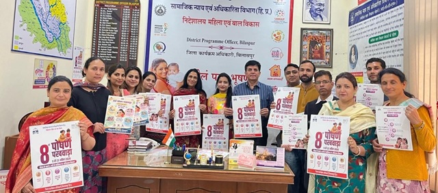 एएम नाथ। बिलासपुर 09 अप्रैल: जिला कार्यक्रम अधिकारी बिलासपुर नरेंद्र कुमार ने जानकारी देते हुए बताया कि निदेशालय महिला एवं बाल विकास, हिमाचल प्रदेश तथा महिला एवं बाल विकास मंत्रालय, भारत सरकार के सौजन्य से 9 अप्रैल से 23 अप्रैल, 2026 तक “8वां पोषण पखवाड़ा” आयोजित किया जा रहा है।