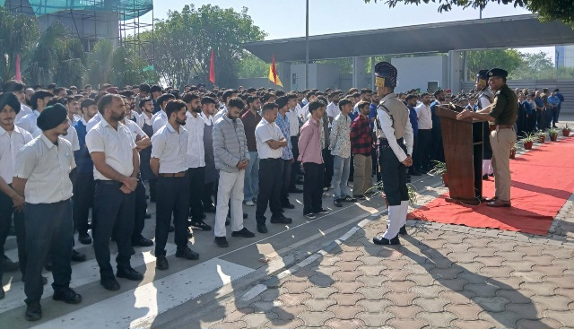 राष्ट्रीय सुरक्षा दिवस पर आयोजित कार्यक्रम की अध्यक्षता करते एसपी बददी विनोद कुमार धीमान।