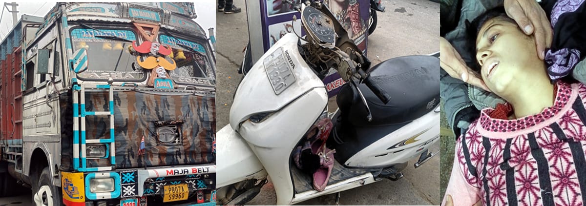 ट्रक ने एक्टिवा स्वार युवती को कुचला, गंभीर घायल