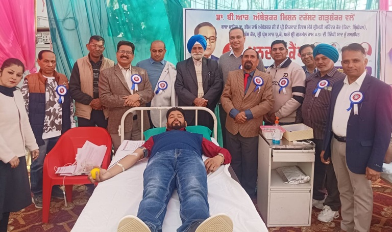 गढ़शंकर, 7 दिसंबर: आज भारतीय संविधान निर्माता बाबासाहेब डॉ. भीम राव अंबेडकर जी के परिनिर्वाण दिवस के अवसर पर स्वर्गीय श्रीमती महिंदर कौर सेवानिवृत्त प्रिंसिपल, श्रीमती हरबंस कौर सुन्नी, श्री प्रेम मान यूके और श्री गुरमेल राम एएसआईजी की याद को समर्पित, डॉ. बीआर अंबेडकर मिशन ट्रस्ट गढ़शंकर द्वारा डॉ. अवतार सिंह जी की अध्यक्षता में तीसरा विशाल रक्तदान शिविर लगाया गया। इस रक्तदान शिविर का उद्घाटन डॉ. सतविंदर पाल सिंह बिट्टू एसएमओ शहीद भगत सिंह नगर ने किया। शिविर की शुरुआत ट्रस्टी सदस्य सतनाम सिंह सुन्नी, डॉ. राजिंदर कुमार बेगमपुर, संदीप बडेसरों हेडमास्टर, डॉ. कश्मीर चंद, डॉ. मयूर दुग्गल, डॉ. रजत दुग्गल, लेक्चरर राज कुमार, लेक्चरर मुलख राज द्वारा रक्तदान करके की गई। आज के विशाल रक्तदान शिविर में 65 रक्तदाताओं ने रक्तदान किया। इस अवसर पर सुन्नी गाँव के हरबंस लाल ने दिव्यांग होने के बावजूद 36वीं बार रक्तदान किया। इस अवसर पर एनआरआई मुखइंदर सिंह उप्पल और अन्य सहयोगियों द्वारा आर्थिक सहयोग प्रदान किया गया। इस रक्तदान शिविर को सफलतापूर्वक संपन्न कराने में सिविल अस्पताल बंगा की ब्लड बैंक टीम द्वारा तकनीकी सहयोग प्रदान किया गया। डॉ. वेद प्रकाश, डॉ. अमरीक सिंह, डॉ. जसवंत सिंह थिंद एसएमओ माहिलपुर, डॉ. जतिंदरपाल सिंह, डॉ. सोनिया ने इस शिविर में बड़े उत्साह से भाग लिया। इस अवसर पर ट्रस्ट सदस्य प्रदीप कुमार गुरु, पीएल सूद, प्रिंसिपल सतनाम सिंह, रणवीर बब्बर, हरजिंदर सून्नी, सुरिंदर पाल गुरु नानक हैंडलूम गढ़शंकर, रविंदर सिंह बीहड़ां, सुखदेव डांसीवाल, विकास नारद गढ़शंकर, करनैल सिंह माहिलपुर, दलवीर राजू, अशोक बड़ेसरों, मनजिंदर बड़ेसरों, दलवीर राजू, दिलावर सिंह, मा. हरदीप कुमार, सैंडी भज्जल वाला, हरी राम, सुरजीत खानपुरी, ठेकेदार हरमेश लाल, कुंदन लाल बड़ेसरों, बलविंदर कुमार, जसविंदर सिंह, तरसेम भंमियां, प्रिंसिपल सतपाल भंमियां, प्रिंसिपल देसराज पोसी, अमरजीत बंगड़, राजिंदर पाल गढ़शंकर, हरपाल सहोता, बलजिंदर सिंह कितना, किरपाल सिंह एमसी गढ़शंकर, लाइब्रेरियन दीवान चंद आदि मौजूद थे।