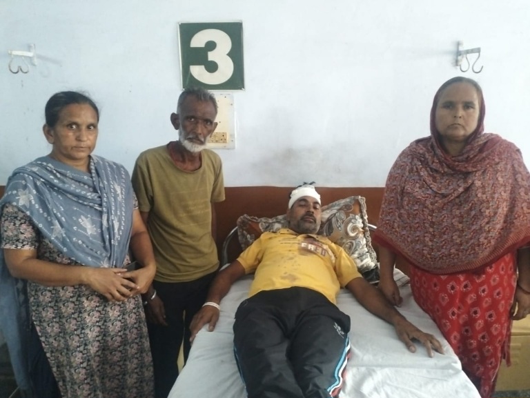 कैप्शन… रणजीत सिंह के साथ हुई लूट की जानकारी देते हुए उसका चाचा सतपाल व अन्य।