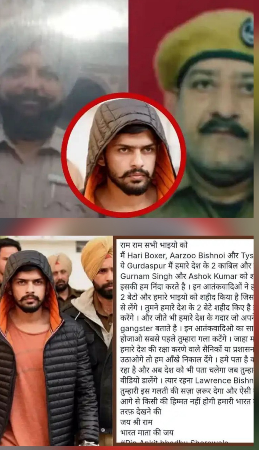 गुरदासपुर : आदियां पुलिस पोस्ट पर दो पुलिसकर्मियों की हत्या मामले में लॉरेंस गैंग की तरफ से घटना को अंजाम देने वालों को खुली धमकी दी है. लॉरेंस गैंगे के गैंगस्टर हैरी बॉक्सर ने सोशल मीडिया पोस्ट शेयर की है ।