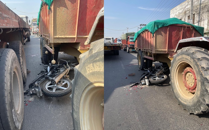 तेज रफ्तार मिट्टी से भरी ट्रैक्टर ट्राली व ट्राले की चपेट में आने से बाईक स्वार एक युवक की मौत व दूसरा गंभीर घायल