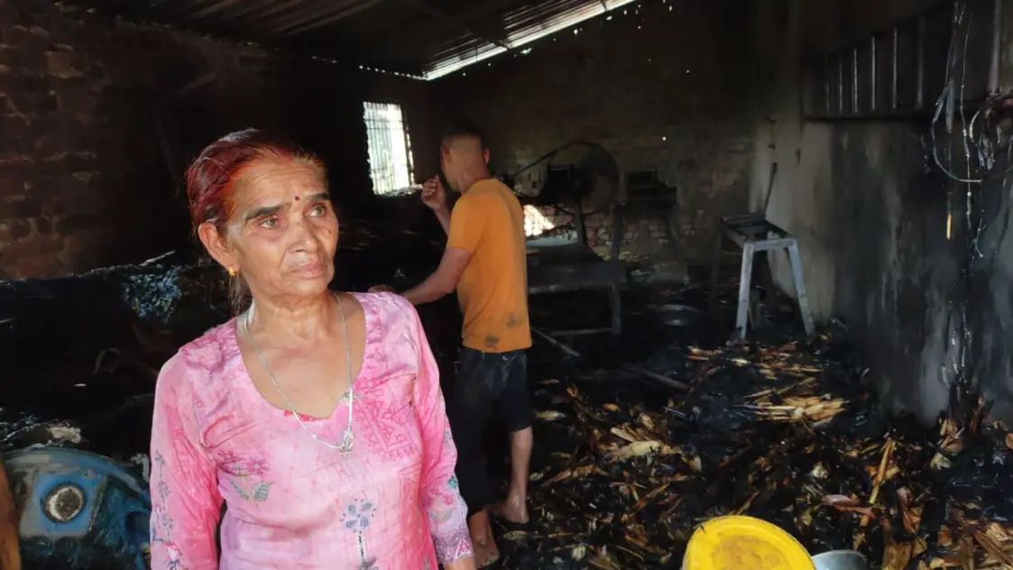 अचानक लगी आग से पशुशाला के अंदर रखी घास कुतरने बाली मशीन, मोटर, मक्की के घटते इमारती लकड़ी व अन्य समान जल गया । स्थानीय ग्रामीणों व फायर ब्रिगेड ने मौका पर पहुंचकर आग पर काबू पाया ।