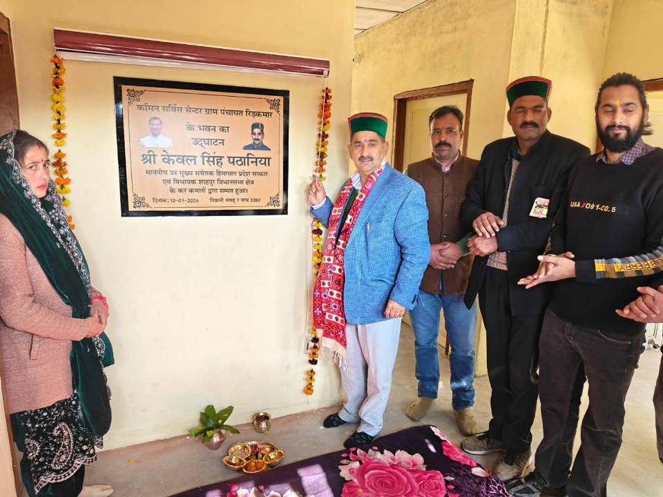 एएम नाथ। शाहपुर : शाहपुर विधानसभा क्षेत्र के विधायक एवं उपमुख्य सचेतक केवल सिंह पठानिया ने आज धारकंडी क्षेत्र की रिडकमार पंचायत में 4 लाख रुपए की लागत से बने स्टेज शेड, 5 लाख रुपए से निर्मित कॉमन सर्विस सेंटर तथा 5 लाख रुपए की लागत से बने सामुदायिक भवन का विधिवत लोकार्पण किया।