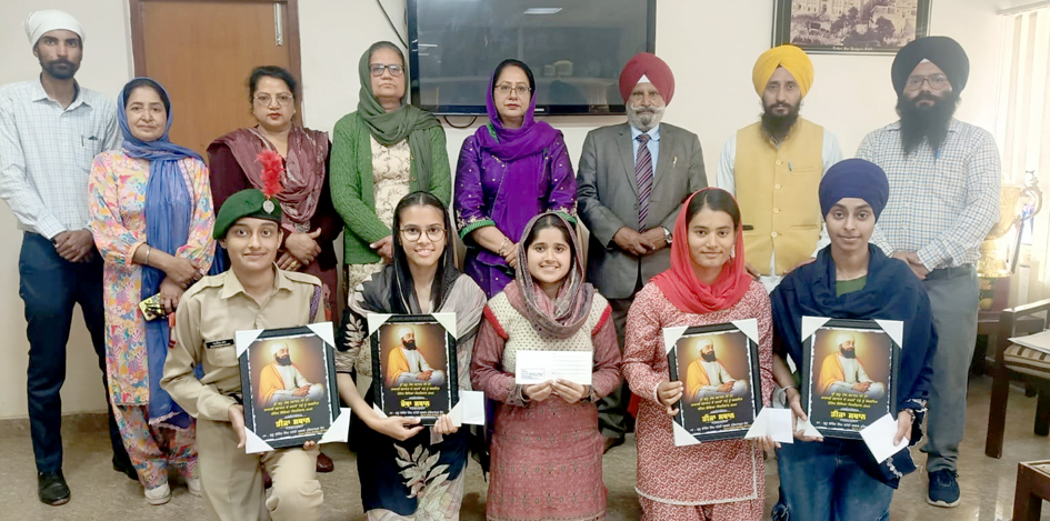 गढ़शंकर : बब्बर अकाली मेमोरियल खालसा कॉलेज गढ़शंकर में कॉलेज के स्टूडेंट्स ने धर्म प्रचार कमेटी शिरोमणि गुरुद्वारा प्रबंधक कमेटी श्री अमृतसर द्वारा फरवरी 2025 के दौरान आयोजित धार्मिक परीक्षा में पहला स्थान हासिल किया है। कॉलेज प्रिंसिपल डॉ. अमनदीप हीरा और प्रचारक भाई गुरजीत सिंह की मौजूदगी में स्टूडेंट्स जसपिंदर कौर और हरप्रीत कौर को 3100-3100 रुपये की कैश स्कॉलरशिप देकर सम्मानित किया गया। इस मौके पर खास तौर पर पहुंचे मा. तीरथ सिंह रत्तू कनाडा ने स्टूडेंट्स की हिम्मत बढ़ाते हुए धार्मिक और नैतिक शिक्षा के महत्व पर जोर दिया और कॉलेज के प्रयासों की सराहना की। इसी तरह, श्री गुरु तेग बहादुर जी के 350वें शहीदी दिवस को समर्पित अक्टूबर-2025 में श्री गुरु गोबिंद सिंह स्टडी सर्कल द्वारा आयोजित परीक्षा में सफल होने वाली छात्रा राजविंदर कौर, नवलीन, सुनेहा और अंजू बाला को नकद राशि और स्मृति चिह्न देकर सम्मानित किया गया। प्रिंसिपल डॉ. अमनदीप हीरा ने इस अवसर पर छात्रों को बधाई दी और कहा कि धार्मिक शिक्षा किसी व्यक्ति के चरित्र के निर्माण में महत्वपूर्ण भूमिका निभाती है और छात्रों को भविष्य में भी इसी तरह कड़ी मेहनत करते रहने के लिए प्रेरित किया। इस अवसर पर प्रो. लखविंदरजीत कौर, डॉ. हरविंदर कौर, डॉ. जानकी अग्रवाल, धार्मिक शिक्षक अमृतपाल सिंह, प्रो. सौरव दादरी और स्टाफ मौजूद थे।