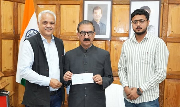 एएम नाथ। शिमला : टंडन क्लब, कांगड़ा के महासचिव नागेश्वर मनकोटिया ने मुख्यमंत्री ठाकुर सुखविन्द्र सिंह सुक्खू को मुख्यमंत्री राहत कोष में 77,000 रुपये का चेक भेंट किया।