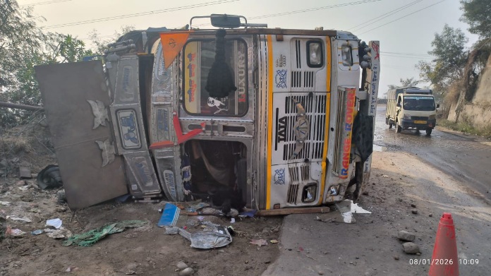 बरोटीवाला, 8 जनवरी :यूनिकेंप- सिक्का होटल मार्ग पर नैना अपार्टमेंट के समीप एक बड़ा ट्राल अनियंत्रित हो कर पलट गया। ट्रक चालक मोड पर अपना संतुलन खो बैठा और यह ट्राला ढांग के ऊपर अटक गया जिससे बड़ा हादसा होने से टल गया। इसके चालक व परिचालक को ट्रक के शीशे तोड़ कर बाहर निकाला गया।
