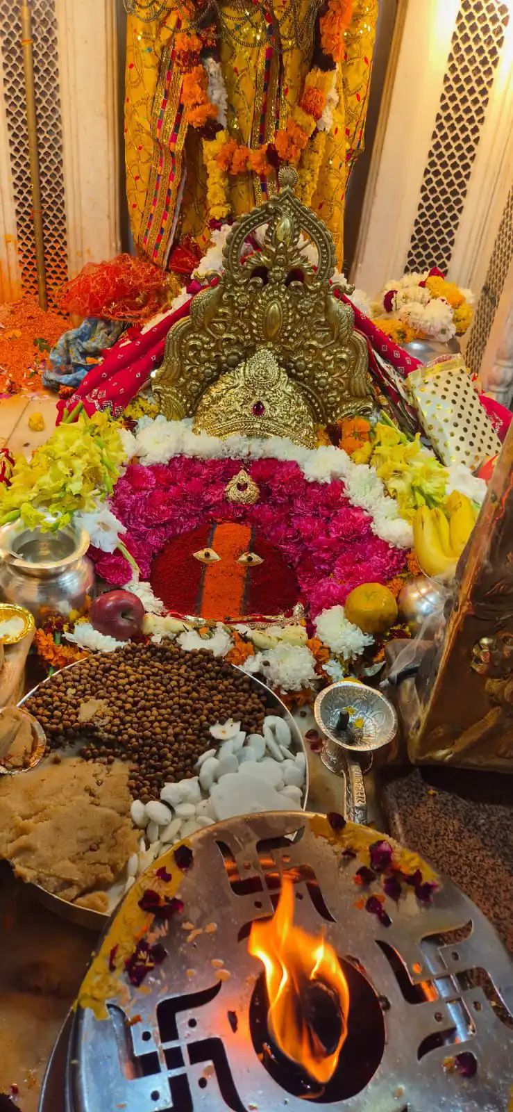मंदिर पुजारी संदीप कालिया ने वैदिक मंत्र उच्चारण के साथ विधिपूर्वक पूजा करवा कर सुबह आरती के समय मुकुट ब टीका मां की पावन पिंडी के चरणों में सुशोभित किया।