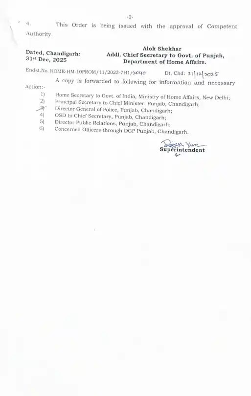 चंडीगढ़ : पंजाब पुलिस में बड़ा प्रशासनिक फेरबदल किया गया है। राज्य सरकार ने 12 आईपीएस अधिकारियों को पदोन्नति देते हुए उप महानिरीक्षक (डीआईजी) के पद पर नियुक्त किया है। यह पदोन्नति आदेश सरकार द्वारा जारी किए गए, जो तत्काल प्रभाव से लागू होंगे।