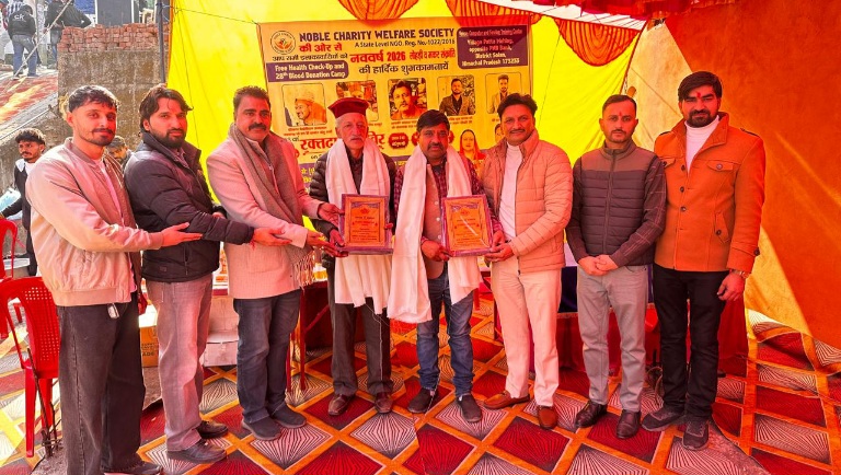 पट्टा मेहलोग 11 जनवरी (तारा) : पट्टा महलोग क्षेत्र में सामाजिक सरोकारों को मजबूत करते हुए नोबल चैरिटी वैल्फेयर सोसाइटी द्वारा 28वां निशुल्क रक्तदान एवं स्वास्थ्य जांच शिविर आयोजित किया। शिविर में 101 यूनिट एकत्रित किया गया, वहीं 88 लोगों ने निशुल्क चिकित्सीय परामर्श का लाभ लिया और न्यूरोथैरेपी भी करवाई। नोबल चैरिटी वैल्फेयर सोसाइटी द्वारा आयोजित 28वें रक्तदान व स्वास्थ्य शिविर में भारत विकास परिषद की टीम ने पूरा सहयोग किया और श्रीकांत अस्पताल खेड़ा के चिकित्सकों डा. अंशु व अन्य ने लोगों के स्वास्थ्य की जांच की।