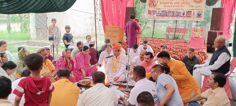 फोटो केप्शन : बद्दी के हाऊसिंग बोर्ड कालोनी में आयोजित कार्यक्रम के दौरान हवन यज्ञ में भाग लेते हुए पदाधिकारी