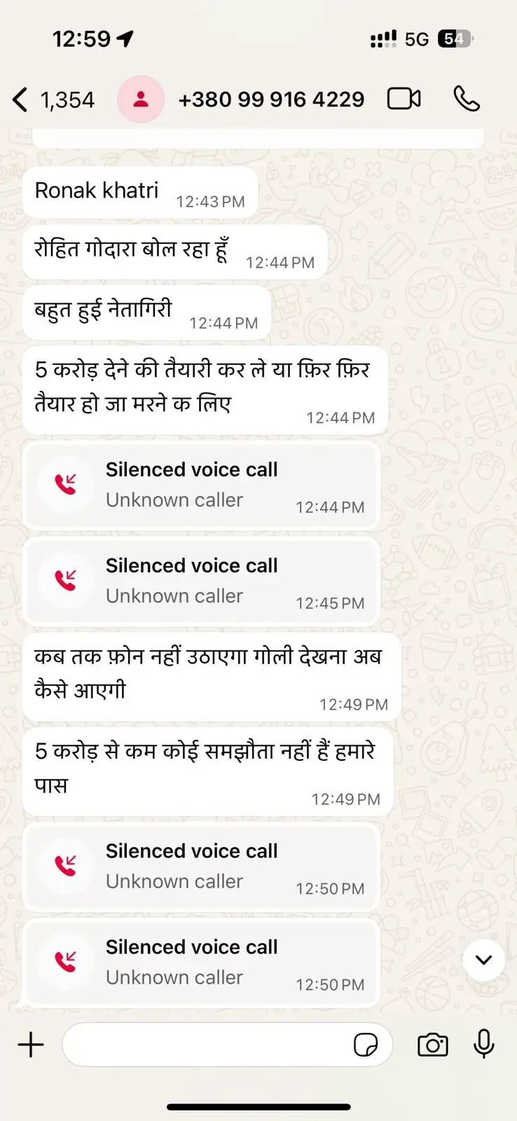 जानकारी के मुताबिक, रौनक को एक विदेशी नंबर से व्हाट्सएप पर मैसेज आने लगे। जवाब न देने पर ऑडियो कॉल भी की जा रही थीं। जब रौनक ने फोन नहीं उठाया, तो उसे और धमकियाँ मिलने लगीं।