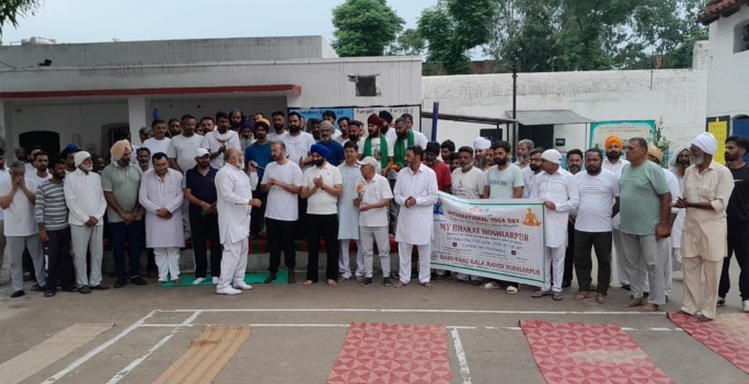 होशियारपुर/दलजीत अजनोहा : माई भारत होशियारपुर के दिशा निर्देशानुसार बहु-रंग कलामंच होशियारपुर की ओर से सैंट्रल जेल होशियारपुर में अन्तर्राष्ट्रीय योगा दिवस मनाया गया। इस अवसर पर एलायन्स क्लब के एैली एडवोकेट एस.पी.राणा तथा एैली रमेश कुमार, जेल सुप्रीडैंट स. हरचरन सिंह तथा अतिरिक्त सुप्रीडैंट हरभजन सिंह, वैटर्न एथलीट एस.पी.शर्मा तथा फिल्म कलाकार अशोक पुरी विशेष तौर पर पहुंचे। इस प्रोग्राम के सूत्रधार सुमेश कुमार वर्मा थे।