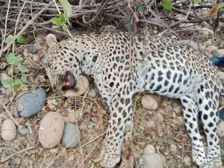 कैप्शन: संदिग्ध हालत में जंगल से बरामद मृत तेंदुआ।