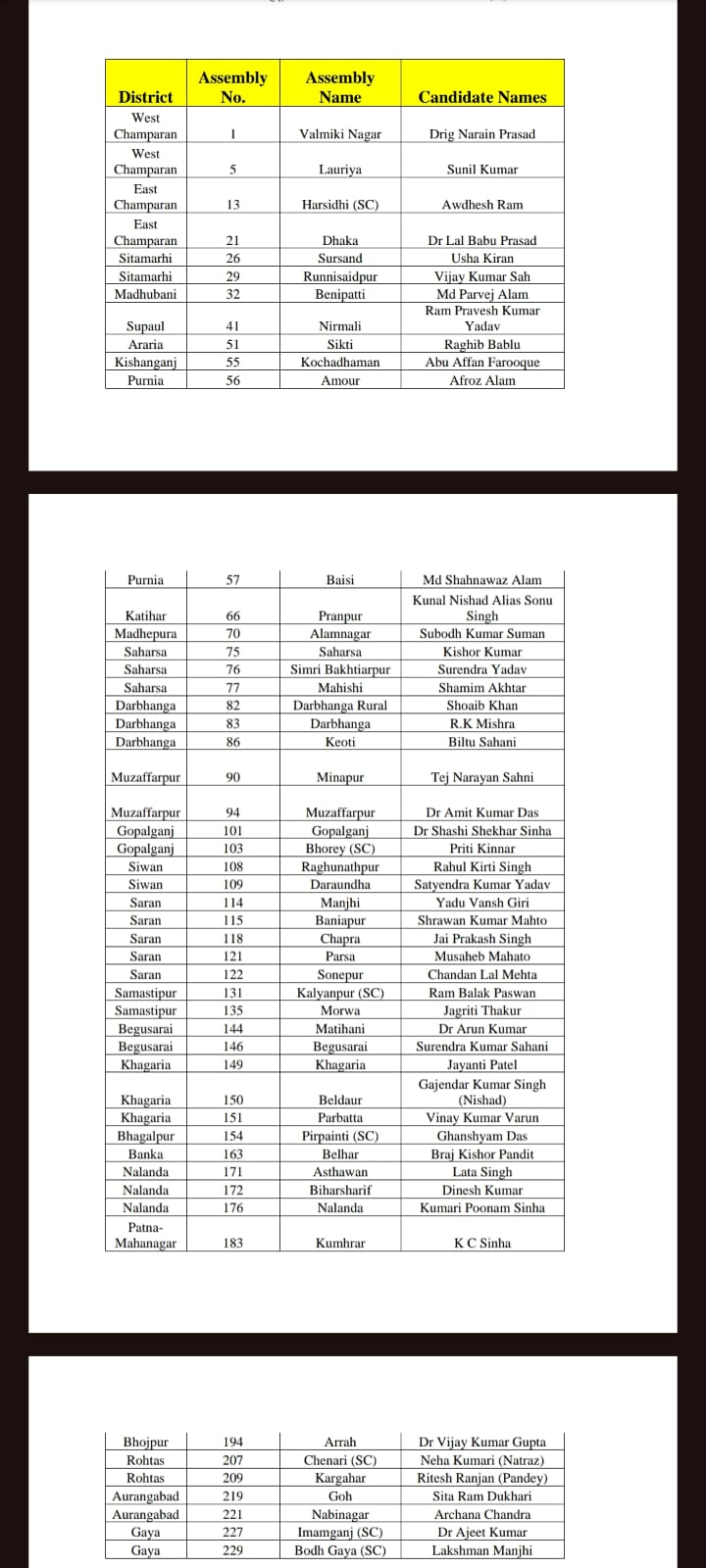 जन सुराज की इस पहली सूची में समाज के विभिन्न तबकों और पृष्ठभूमियों से आने वाले उम्मीदवारों को मौका दिया गया है. गोपालगंज जिले की भोरे सीट से प्रीति किन्नर को टिकट देकर पार्टी ने सामाजिक समावेशन का संदेश दिया है. वहीं, दरभंगा सदर सीट से आर.के. मिश्रा, सहरसा शहर से किशोर मुन्ना, छपरा शहर से पूर्व एडीजी जे.पी. सिंह और इमामगंज सीट से अजीत राम को उम्मीदवार बनाया गया है।