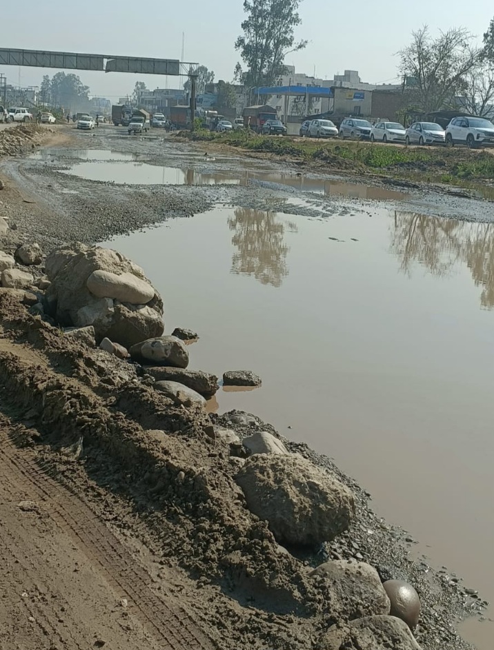 फोटो कैप्शन :  बद्दी नालागढ़ फोरलेन की खस्ता हालत