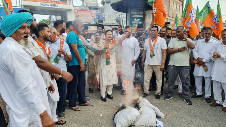 भाजपा नेता निमिषा मेहता को बीते दिन पुलिस दुआरा डीटेन करने खिलाफ भाजपाइयों ने पंजाब सरकार का पुतला फूंका