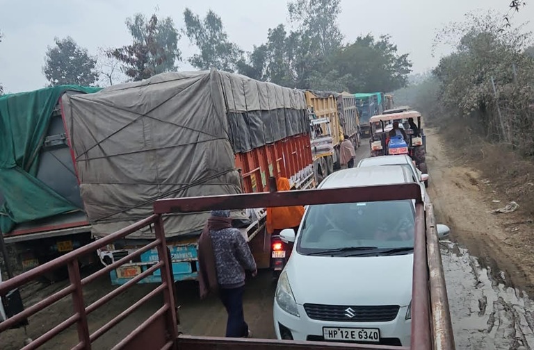 गांव महिंदवाणी में से हिमाचल प्रदेश से माइनिंग मटीरियल लेकर आ रहे ओवरलोडिड टिप्परों ने लोगों का जीना हराम कर रखा है। कल तो हालत इतने खराब थे कि हिमाचल बॉर्डर तो लेकर गांव महिंदवाणी में पूरी तरह ओवरलोडिड टिप्परों के भारी संख्या में आने से चरों और जाम लग गया। जिसके कारण लोगों को भारी परेशानी का सहमना करना पड़ा और लोग घरों में रहने को मजबूर हो गए। देर शाम तक कोई भी प्रशासनिक ो पुलिस अधिकारी मौके पर नहीं पहुंचा और देर रात जाकर जाम खुला। गांव के पूर्व पांच गुरदीप सिंह के बताया कि गांव में स्कूटी पर भी करीव दो सौ मीटर जाने के लिए भी तीस मिनट का समय लग रहा था। गांव के लोग जरुरी काम करने के लिए भी घरों से बाहर निकल नहीं पा रहे थे और घरों में मजबूर थे।