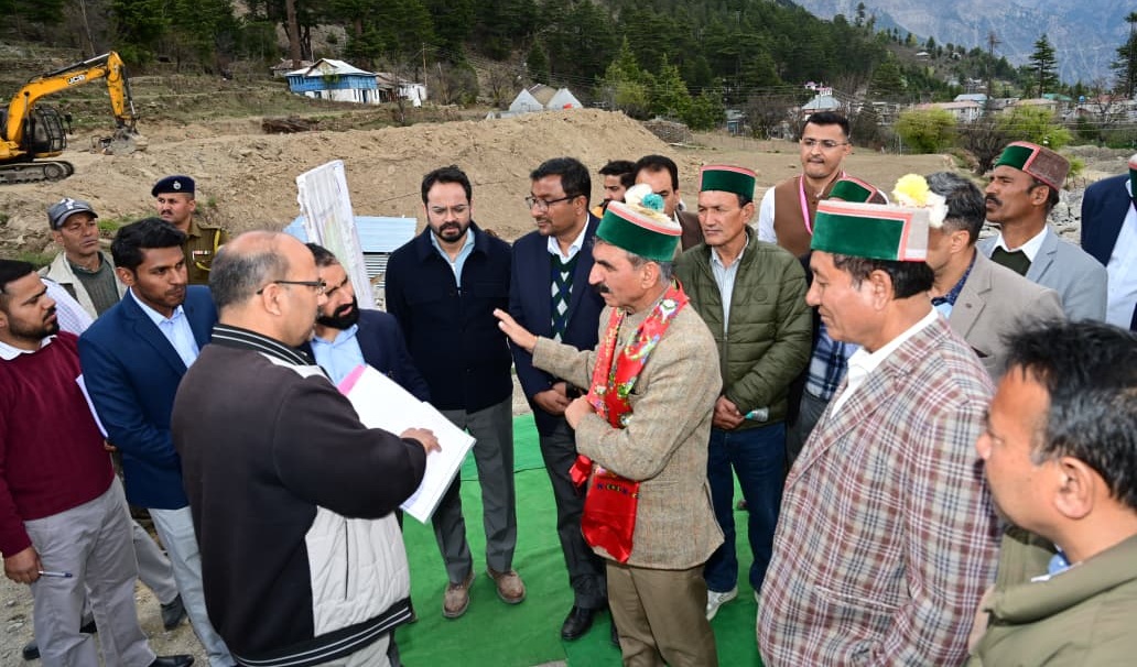 एएम नाथ।  किन्नौर : मुख्यमंत्री ठाकुर सुखविन्द्र सिंह सुक्खू ने आज किन्नौर जिला के कल्पा में राजीव गांधी डे-बोर्डिंग स्कूल और खेल छात्रावास के निर्माणाधीन भवन का निरीक्षण किया। उन्होंने अधिकारियों को डे-बोर्डिंग स्कूल के निर्माण कार्य में तेजी लाने के निर्देश दिए ताकि समयबद्ध काम पूरा किया जा सके। May be an image of one or more people and text