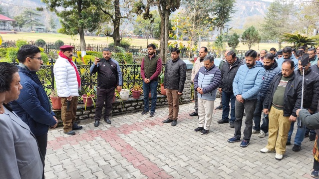 एएम नाथ। चंबा : उपायुक्त मुकेश रेपसवाल की अध्यक्षता में शहीद दिवस के अवसर पर आज उपायुक्त कार्यालय परिसर में अधिकारी एवं कर्मचारियों द्वारा दो मिनट का मौन रखकर देश के अमर शहीदों को श्रद्धांजलि अर्पित की गई।