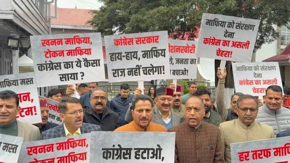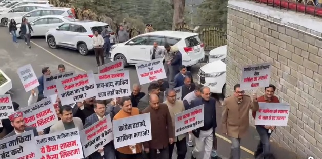 विपक्ष के नेता जयराम ठाकुर के नेतृत्व में भाजपा विधायकों ने ”कांग्रेस हटाओ माफिया भगाओ, कमीशनखोरी बंद करो जनता का पैसा बचाओ” जैसे नारों वाली तख्तियां लेकर कांग्रेस के खिलाफ नारे लगाए।