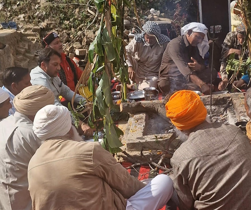 फोटो : शिव मंदिर झोनोवाल में हवन में मौजूद गांववासी।