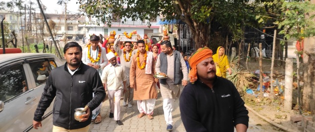 बद्दी 9 फरवरी (तारा) : महाशिवरात्रि एवं शनि नवग्रह मंदिर स्थापना दिवस के उपलक्ष्य पर प्राचीन हनुमान मंदिर झाड़माजरी में श्रीमद् भागवत कथा एवं ज्ञान यज्ञ का प्रारंभ हुआ । सर्वप्रथम ग्रामीणों द्वारा यह भव्य कलश यात्रा का आयोजन किया गया जो झाड़माजरी मंदिर से होते हुए झाड़माजरी बाजार, प्लांखवाला, डोगरावाला होते हुए मंदिर प्रांगण में पहुंची। जानकारी देते हुए हनुमान मंदिर सेवा दल के प्रधान हरबंस ठाकुर ने बताया कि भागवत कथा में आचार्य सुंदर मिश्रा एवं यज्ञ आचार्य अनिल पांडे 9 दिन तक लोगों को अपने प्रवचनों से निहाल करेंगे। सोमवार को कथावाचक आचार्य सुंदर मिश्रा ने भागवत कथा के महत्व को समझाते हुए कहा की कलयुग में साक्षात भगवान भागवत कथा में उपस्थित होते हैं ।इसके सुनने मात्र से ही लोगों के अनेक कष्ट दूर हो जाते हैं। इसके अलावा उन्होंने लोगों को कलश यात्रा का महत्व समझाते हुए कहा कि जहां-जहां कलश यात्रा का प्रवास होता है वहां से बुरी आत्माओं का अंत हो जाता है। इस मौके पर रमेश मेशू,जैसलमेर चंदेल, जोगिंदर ठाकुर, भाग सिंह धीमान, महेंद्र सिंह धीमान ,विशाल सिंह धीमान, जितेंद्र दीवान, सोहनलाल, दीवान, प्रिंस ,मुकेश हनी ,धीमान, तृप्ता देवी ,आंटी देवी समेत अनेक लोग उपस्थित रहे उपस्थित रहे।