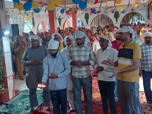 कैप्शन-मलपुर में आयोजित भागवत कथा के समापन पर आरती में भाग लेते हुए ग्रामीण