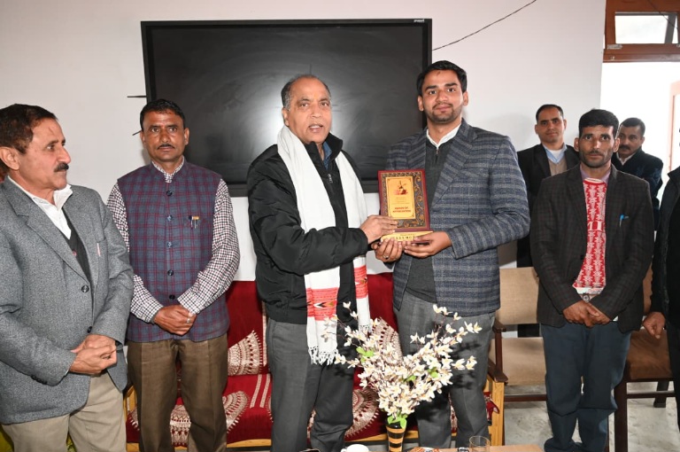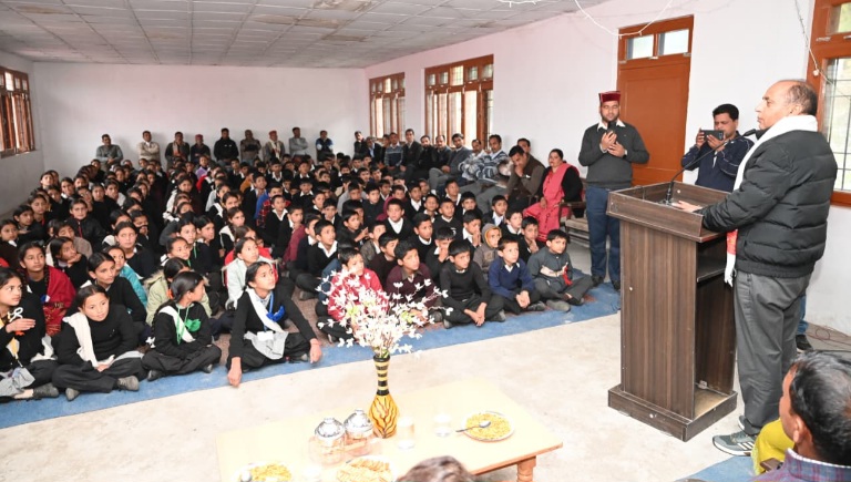 गोद लिए हुए बागा चुनोगी स्कूल पहुंचे नेता प्रतिपक्ष जयराम ठाकुर