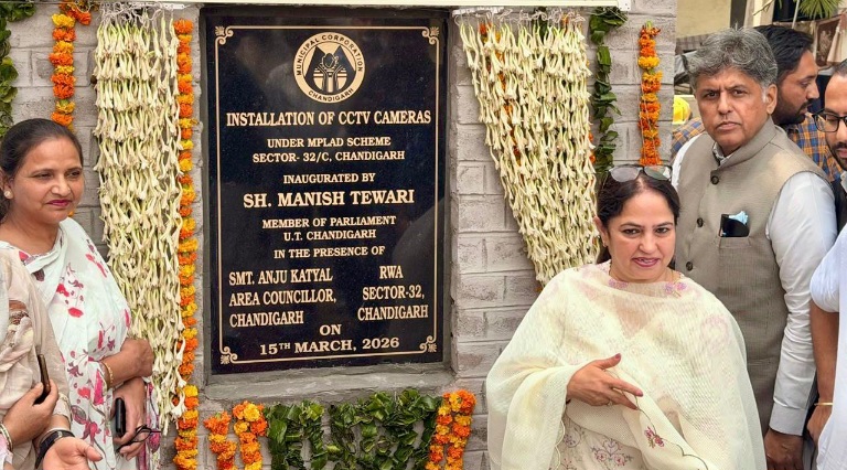 चंडीगढ़, 15 मार्च: चंडीगढ़ से सांसद और पूर्व केंद्रीय मंत्री मनीष तिवारी ने आज सेक्टर-32 कॉलोनी में लगाए गए नए सीसीटीवी कैमरों का उद्घाटन किया। इन कैमरों की स्थापना के लिए उन्होंने अपने सांसद कोटे से 5 लाख रुपये की ग्रांट जारी की थी।