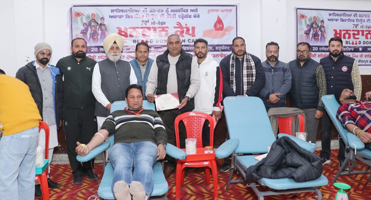 गढ़शंकर, 22 दिसंबर: साहिबजादों की शहादत को समर्पित तथा शिवालिक संस्था की तीसरी वर्षगांठ के अवसर पर श्री विश्वकर्मा मंदिर गढ़शंकर में 7वां स्वैच्छिक रक्तदान और निःशुल्क चिकित्सा शिविर आयोजित किया गया जिसमें कुल 51 यूनिट रक्त एकत्र किया गया। इस अवसर पर नागपाल अस्पताल गढ़शंकर द्वारा निःशुल्क चिकित्सा शिविर का भी आयोजन किया गया। इस मौके सोम नाथ बंगड़ ने कहा, “रक्त केवल दान किया जा सकता है, बनाया नहीं जा सकता।”  यह रक्तदान शिविर संत गुरमेल सिंह रक्त केंद्र गढ़ी कानूगो बलाचौर के तकनीकी सहयोग से आयोजित किया गया था। इस रक्तदान शिविर का उद्घाटन आप के वरिष्ठ नेता और पूर्व अध्यक्ष नगर परिषद गढ़शंकर सोम नाथ बंगड़ ने किया। इस रक्तदान शिविर में क्षेत्र के विभिन्न धार्मिक, सामाजिक और राजनीतिक संगठनों के सदस्य विशेष रूप से उपस्थित थे, जिनमें कांग्रेस के पूर्व विधायक लव कुमार गोल्डी विशेष रूप से मौजूद थे। इस शिविर के दौरान गुरनेक सिंह भज्जल, रौकी मोइला, शिंदा गोलियां, दर्शन सिंह मट्टू, प्रिं बिक्कर सिंह, सरिता शर्मा, कुलविंदर सिंह बिट्टू, गोल्डी सिंह बीहड़ां, विश्वकर्मा सभा के अध्यक्ष जोगिंदर सिंह रियात, भूपिंदर सिंह राणा, डॉ. लखविंदर कुमार लक्खी, किसान नेता जसवंत सिंह भट्टल, एडवोकेट जसबीर सिंह राय, अजायबब सिंह बोपराय, कमल कटारिया ब्लॉक समिति सदस्य, ओ.एस.डी सुखविंदर सिंह, दरबारा राम मेहताबपुर, धर्मजीत सिंह राजा, राकेश कुमार, भूपिंदर राणा, संदीप बोड़ा, मनजीत कुमार, अनूप सिंह भदरू, सरपंच हरप्रीत सिंह साधोवाल, प्रीत पारोवाल, मास्टर हंस राज, अशोक बड़ेसरों, हरदीप सिंह, विनोद कुमार कुनैल, चरणप्रीत सिंह लाडी, राजिंदर सिंह, कमलजीत पाहलेवाल, रणवीर बीरमपुर, गुरदयाल भनोट, जसप्रीत सुजों, सैंडी भज्जल, अशोक कुमार, सरपंच और ब्लॉक समिति सदस्य कुलदीप शर्मा, इंद्रजीत सिंह बरियाना जिला परिषद सदस्य, जोगिंदर सिंह, जसवीर सिंह झल्ली, राजन, अनमोल खख, दविंदर सिंह सूबेदार, पुनीत नागपाल, सतीश सोनी, सुखविंदर सिंह, नरेश भुबला, बलजिंदर सिंह, जसविंदर सिंह, भूपिंदर सिंह सैंहबी, राजन बीरमपुर सहित अन्य गणमान्य लोग उपस्थित थे। शिविर के दौरान संस्था ने रक्तदान करने वाले युवाओं को विशेष रूप से सम्मानित भी किया। शिविर के बारे में जानकारी देते हुए प्रबंधन ने बताया कि यह नेक प्रयास पिछले तीन वर्षों से शिवालिक संगठन की टीम द्वारा किया जा रहा है और यह शिविर सातवीं बार शहादत को समर्पित करते हुए आयोजित किया गया था। शिवालिक न्यूज़ संगठन ने इस रक्तदान शिविर में रक्तदान करने वाले युवाओं और इस शिविर को सहयोग देने वाले व्यक्तियों का विशेष रूप से आभार व्यक्त किया। इस शिविर के दौरान, नागपाल अस्पताल गढ़शंकर ने डॉ. अभिजीत सिंह के कुशल ने